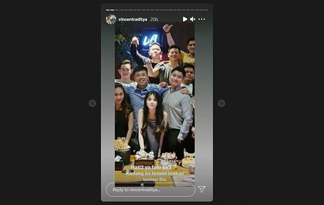 Kapten Vincent juga mengunggah sebuah foto dirinya bersama teman-teman dan istrinya, Novita Condro. Kapten Vincent mengatakan bahwa siapapun kini harus berhati-hati saat foto bertiga bareng pasangan dan teman. "Hati-hati ya, foto bertiga kadang bisa teman makan teman loh," imbuhnya.