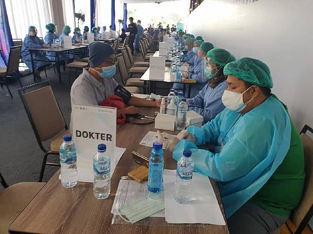 Gugus Tugas Covid-19 Kabupaten Sleman memantau pelaksaan vaksinasi Covid-19 untuk pelaku usaha pariwisata dari kalangan hotel dan restoran di Hotel Marriott Yogyakarta, Senin 21 Juni 2021. TEMPO | Pribadi Wicaksono